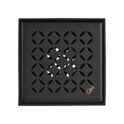 Delmar Lotus Center Square Shower Drain - Floor Mount - 4" Stainless Steel/Black