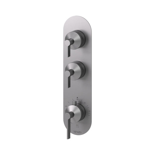 View full detailsPaloma Extenza 3 Way Thermostatic Shower Mixer - Wall Mount - 15" Brass/Gun Metal