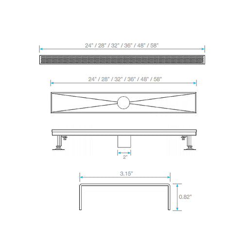 View full detailsDelta Delmar Standard Plain Edge Linear Shower Drain - Floor Mount - 58" Stainless Steel/Polished