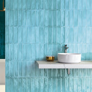 Flow Atoll Blue Rectangular Wall Tile - Wall Mount - 3 x 12" Ceramic/Blue