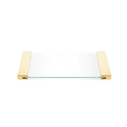 Elegant and modern multifunction tray. Made of clear glass with sides in brass gold finish. Its quality components will make this tray a durable accessory that will last over time. Designed to place perfumes, cosmetics or small bathroom accessories such as toothbrush holders, tissue box holders, cotton box holders, etc. Beveled glass sides for protection and elegance.