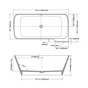 Lukas Tub With Shelf Right Bathtub - Free Standing - 64" Solid Surface/Matte Black/Brushed Gold