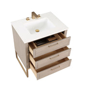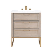 Markham 3 Drawers Bathroom Vanity with Quartz Sink - Floor Mount - 30" Wood/Cashmere Grey/Satin Brass