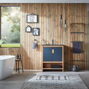 Lyon 2 Doors And 1 Open Shelf Bathroom Vanity with Black Stone Sink - Floor Mount - 30" Wood/Black Of Night/Maple