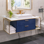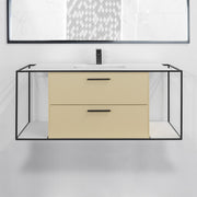 Linea 2 Drawers Premium Bathroom Vanity with Solid Surface Sink - Wall Mount - 48" Wood/Brass/Zest Paint/Matte Black