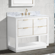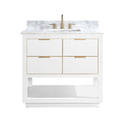 Allie 4 Drawers Bathroom Vanity with Carrara Sink - Floor Mount - 36" Wood/White/Matte Gold