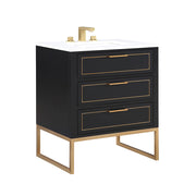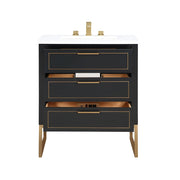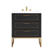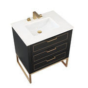 Markham 3 Drawers Bathroom Vanity with Quartz Sink - Floor Mount - 30" Wood/Midnight Black/Satin Brass