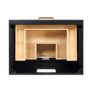 The Markham vanity collection draws inspiration from the refined aesthetics of the mid-century modern period, as it steps out from the set of Mad Men to become a statement piece in its own right. Its clean lines, stunning material contrast, and attention to detail exude an artistic refinement. With a contrasting real wood veneer and satin brass frame, the cabinet is available in three to six drawers and adds an urbane style and presence from every angle. The slim, soft-glide horizontal pulls and delicate metal inlays add elegance to the facade. The collection’s high-quality materials and attention to detail make it a standout addition to any bathroom design