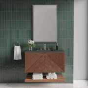 Marcello 2 Doors Bathroom Vanity with Quartz Sink - Wall Mount - 36" Wood/Chestnut