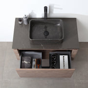 Ocala 1 Drawer Bathroom Vanity with Quartz Top and Vessel Sink - Wall Mount - 36" Wood/Chestnut