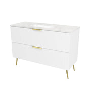 Elenora 4 Drawers Bathroom Vanity with Solid Surface Carrara Single Sink - Free Standing - 48" Wood/Satin White/Gold