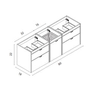 Logika 2 Drawers And 1 Wardrobe Bathroom Vanity with Mineral Countertop - Wall Mount - 80" Mdf/Eternity Oak/Inox