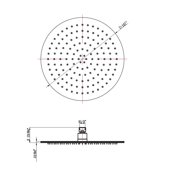 Metro 3-Way Thermostatic Trim Complete Shower Set - Ceiling Mount - 12" Brass/Polished Chrome