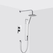 Pressure balanced 3-Way shower system of our family Metro. With this shower set you have everything you need to install your shower. It is a three-way system with outlet for shower head, outlet for hand shower and outlet for tub spout diverter. Composed of three-way thermostatic mixer, tub spout, hand shower, hose, hand shower shower connector with holder, shower arm for wall installation and shower head.