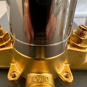 Pressure balance shower mixer with 1 outlet of our family Devon. With this type of mixer you can maintain a precise water temperature during the shower. It protects you from any sudden change in the pressure of the water supply. The presostatic valve mixes the hot and cold water at the preselected temperature and reacts instantaneously to any change in the pressure of the water supply by readjusting the hot and cold water mixture to maintain a constant temperature at the outlet. If there is a failure in the supply pressure of cold or hot water, the pressure valve will close automatically. It is very convenient and safe, will keep the temperature of the preselected water and allow you to relax and enjoy your shower. It is ideal for all types of bathrooms, especially the bathroom for children that prevents possible burns due to pressure drops in the cold water.It has two outputs, one direct and one secondary. If we connect the secondary output to a bathtub spout with diverter, we convert the system into a two ways system. The system includes rough-in valve and trim. Available in different finishes and versions.