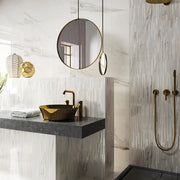 A subtle decoration, 30x90 cm in size, consisting of fine lines with shimmering and shiny areas with a glitter effect. Designed to be combined with floor and wall tiles in the Calacatta range.CALACATTA, a range of white marble products with grayish veins that will make any space a stylish and appealing setting. Discover our new SUPERWHITE floor tile models that come in a polished or brushed finish, with a whiter appearance that is suitable for any room.Go ahead and combine it with any Calacatta decoration!