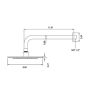 Universal Round Rainhead Complete Shower Head - Wall Mount - 8" Brass/Polished Chrome