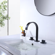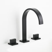 Contemporary and elegant bathroom faucet with two valves. Design of flat square lines that makes it worthy of being inside our Luk 2 family, a series of modern style bathroom accessories.This faucet includes classic straight lines for an attractive but substantial style that provides an elegant bathroom sensation. The characteristics of graceful style and without complications give this taps an eternal but fashionable presence. Adapted but relaxed. This brilliant collection works perfectly with current lifestyles. The handles make it easy to adjust the water. Clear laminar flow provides a beautiful waterpresentation. Tap handles can be installed at any distance between 8 in. and 16 in. for more customized extended installation.Available in different finishes.