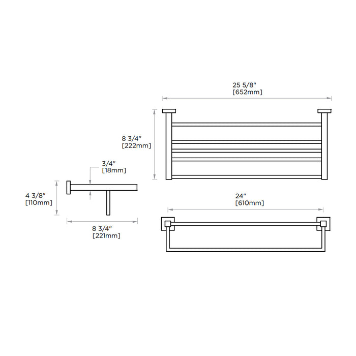 London Towel Shelf - Wall Mount - 24" Brass/Matt Black