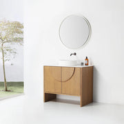 Celle 2 Doors Bathroom Vanity with Solid Surface Top and Vessel Sink - Floor Mount - 36" Wood/Pecan Oak
