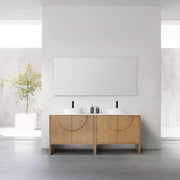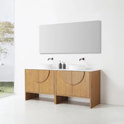 Celle 4 Doors Bathroom Vanity with Solid Surface Top and Vessel Sink - Floor Mount - 72" Wood/Pecan Oak