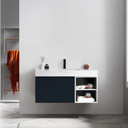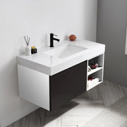 Manarola 1 Drawer And 2 Open Shelf Bathroom Vanity with Quartz Sink - Wall Mount - 42" Wood/Matt Black/White