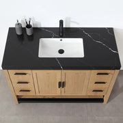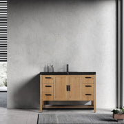 Winchester 6 Drawers And 2 Doors Bathroom Vanity with Black Quartz Sink - Floor Mount - 48" Wood/Pecan Oak