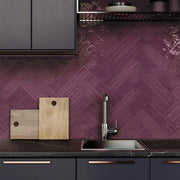 Flow Burgundy Rectangular Wall Tile - Wall Mount - 3 x 12" Ceramic/Red Wine