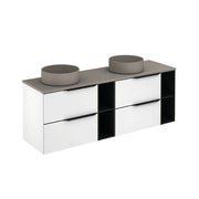 Mio 4 Drawers + 2 Open Shelf Bathroom Vanity with Mineral Countertop - Wall Mount - 64" Particle Board Laminated/Matte White/Matte Black