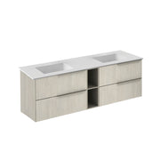 Mio 4 Drawers + 1 Open Shelf Bathroom Vanity with Mineral Sink - Wall Mount - 72" Particle Board Laminated/White Oak/Sand